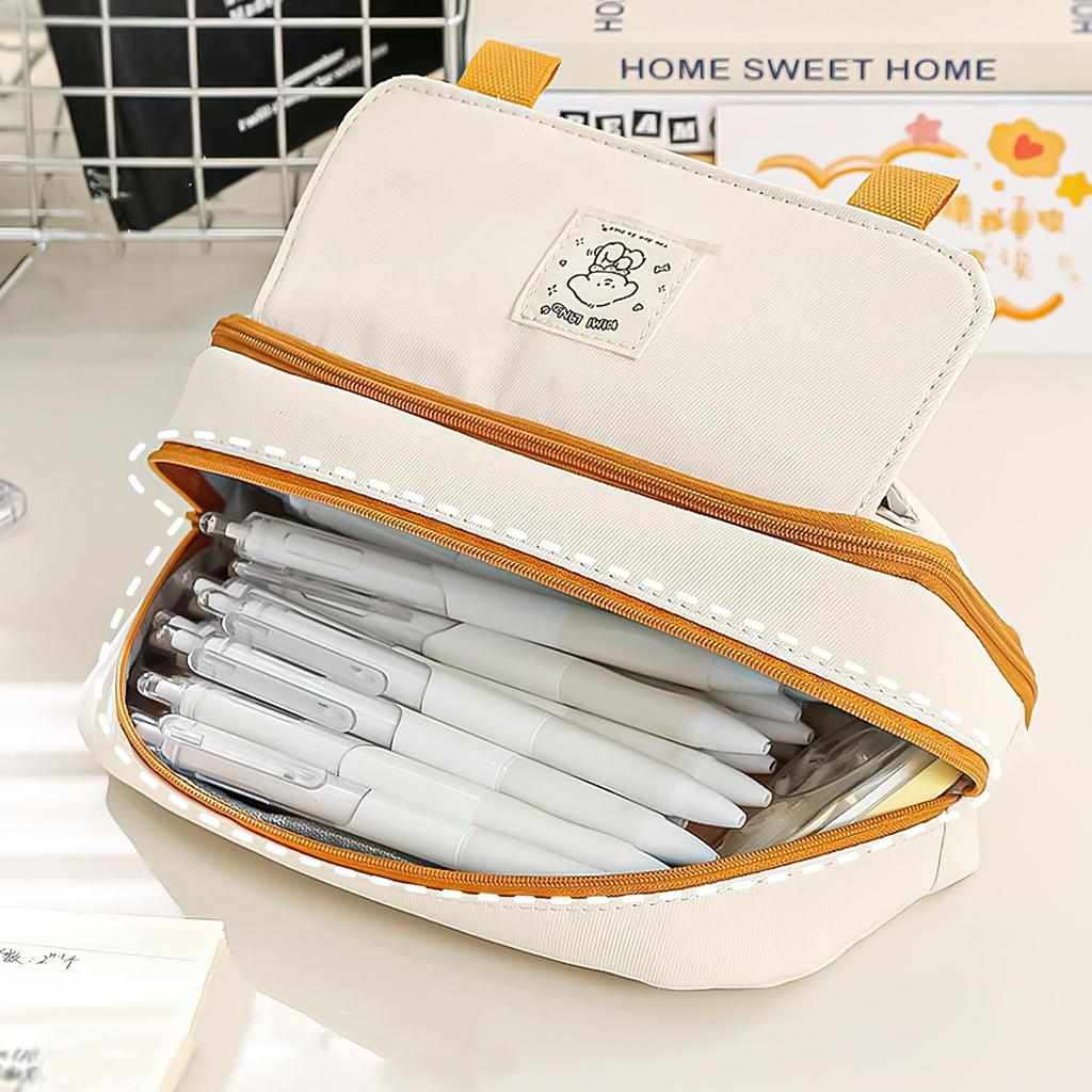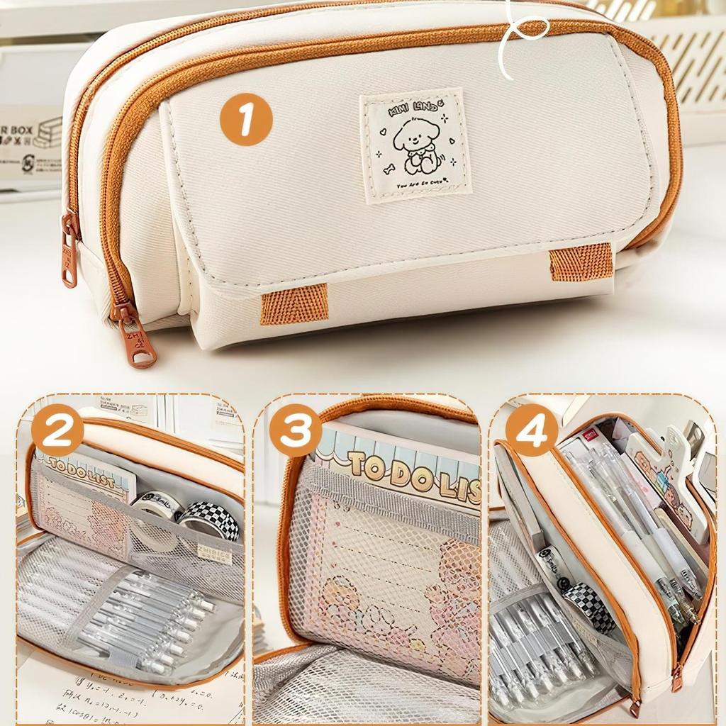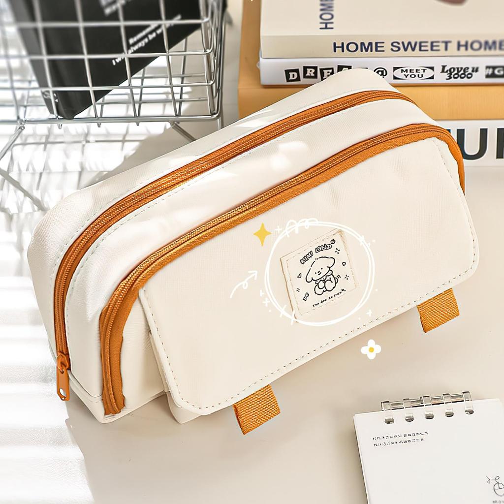 Милая мультяшная собака-пенал для ручек, 4-слойная белая сумка для хранения канцелярских принадлежностей