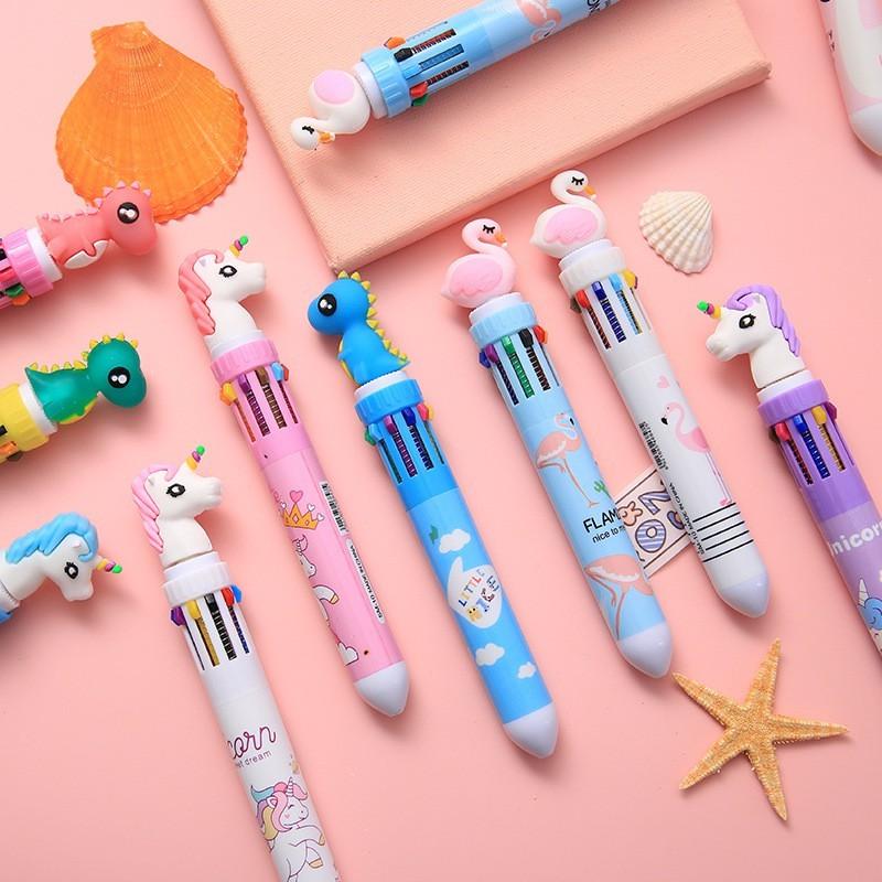 10 цветов шариковая ручка милый единорог мультфильм динозавр цвет выдвижная ручка многоцветная в 1