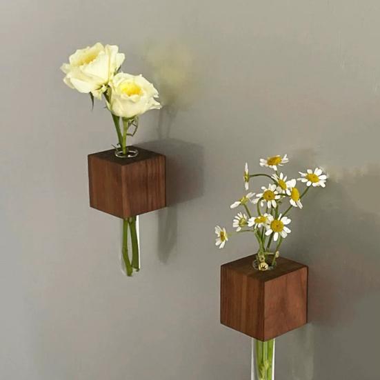 Инновационное строительство: Сочетание дерева и стекла в этой вазе позволяет надежно размещать ее на магнитных поверхностях, обеспечивая стабильную и стильную обстановку для ваших любимых цветов.