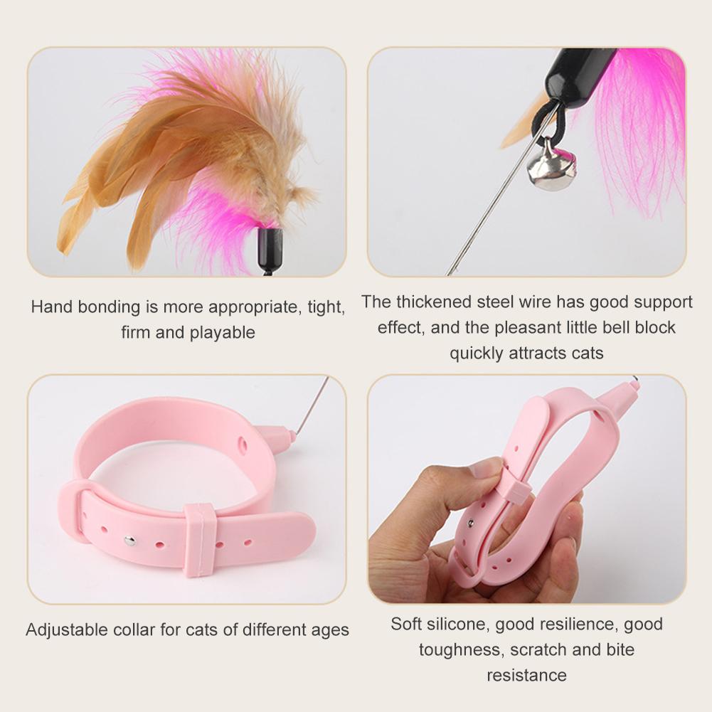 Силиконовый кошачий ошейник с перьями, игрушки-дразнилки для кошек, интерактивные игры, забавные игрушки для кошек, тизер с перьями для кошек, товары для домашних животных
