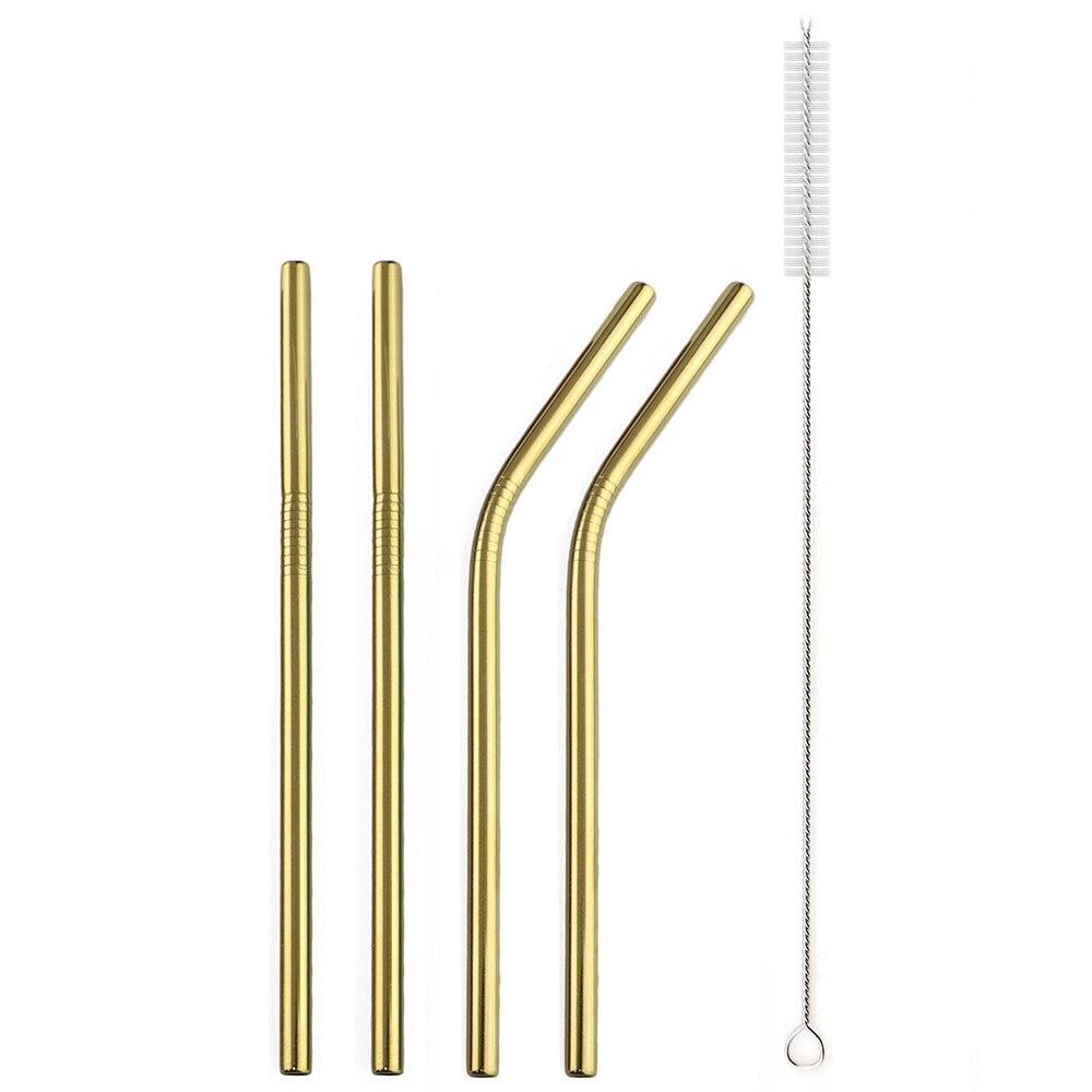 Металлическая золотая соломинка, 4 шт., с щеткой для чистки посуды, соломинка из нержавеющей стали 304, многоразовые соломинки для питья — купить товар онлайн с бесплатной доставкой по всему миру!
