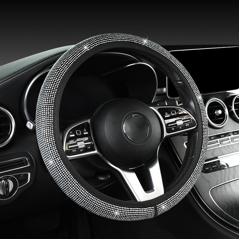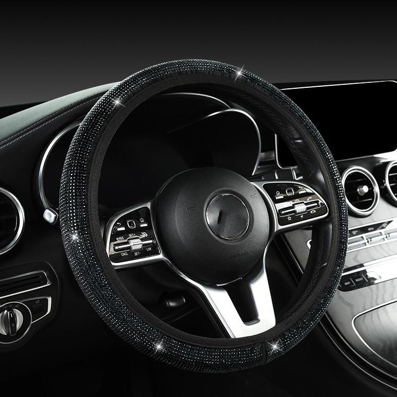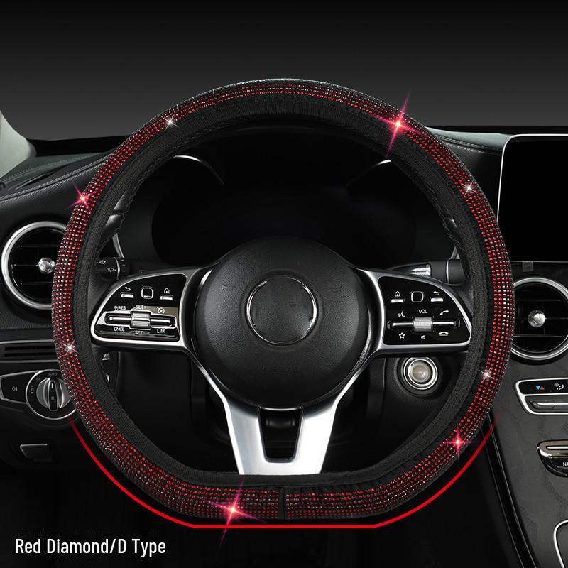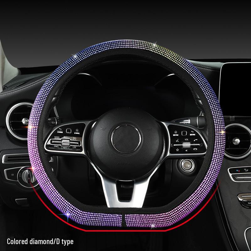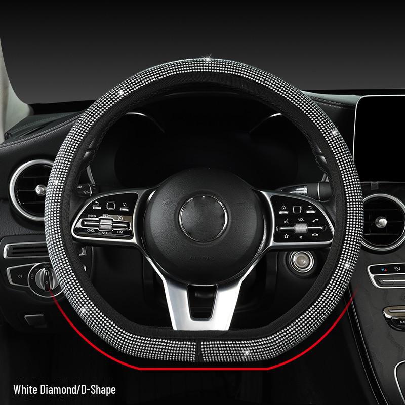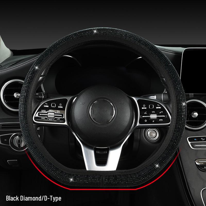Стильный чехол на руль автомобиля с бриллиантами для всех сезонов с чехлом на руль Flash Diamond и D-образным силиконовым нижним чехлом на руль.