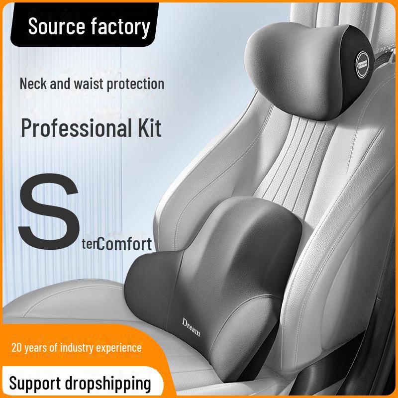 Комплект подголовника и подушки для шеи в автомобиль с пеной с эффектом памяти для максимального комфорта и защиты поясницы.