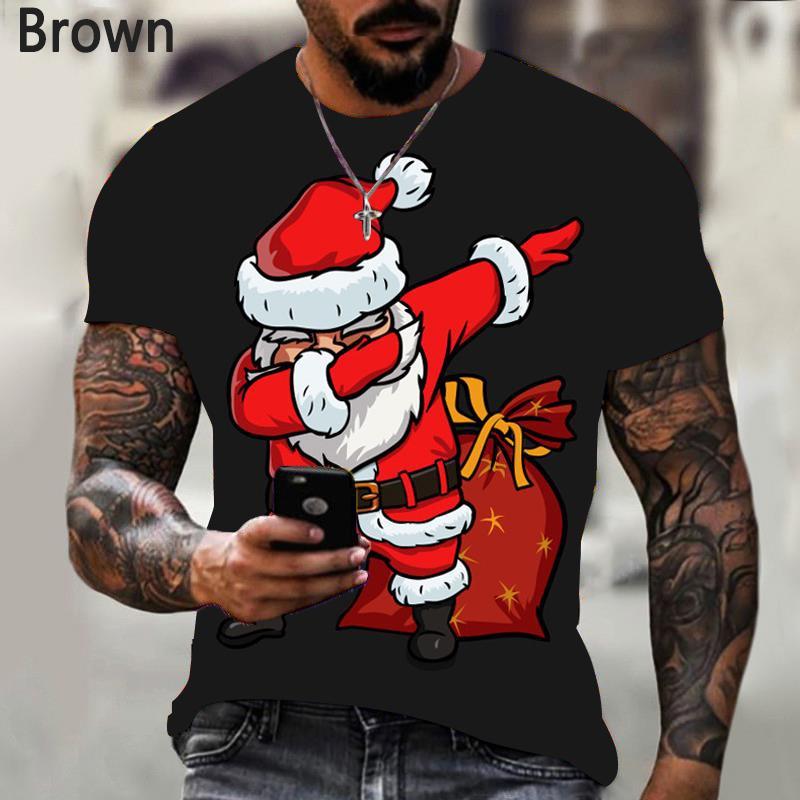 Футболка с изображением Санта-Клауса 3D, мужская модная летняя повседневная рубашка с короткими рукавами на рождественскую тематику