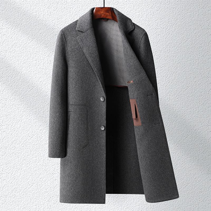 Новое осенне-зимнее утолщенное длинное шерстяное двухстороннее шерстяное пальто с воротником для костюма, мужское молодежное тонкое пальто