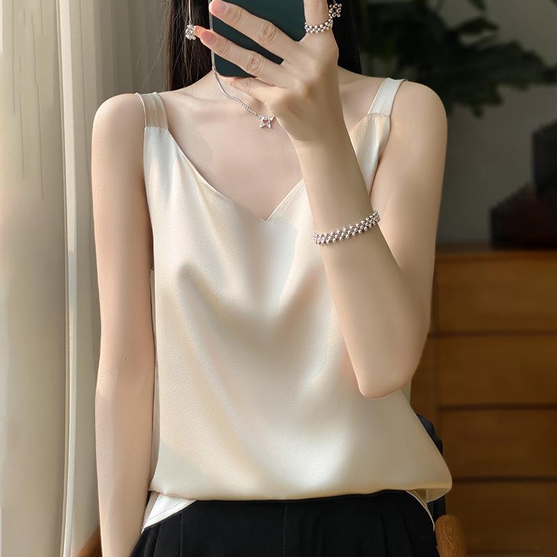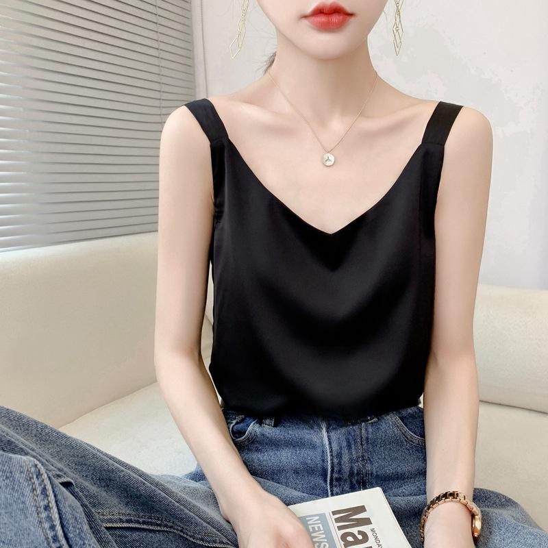 INDFS Женская мода Повседневная Летняя Весна Однотонные принты Без рукавов V-образный вырез Блузки и рубашки