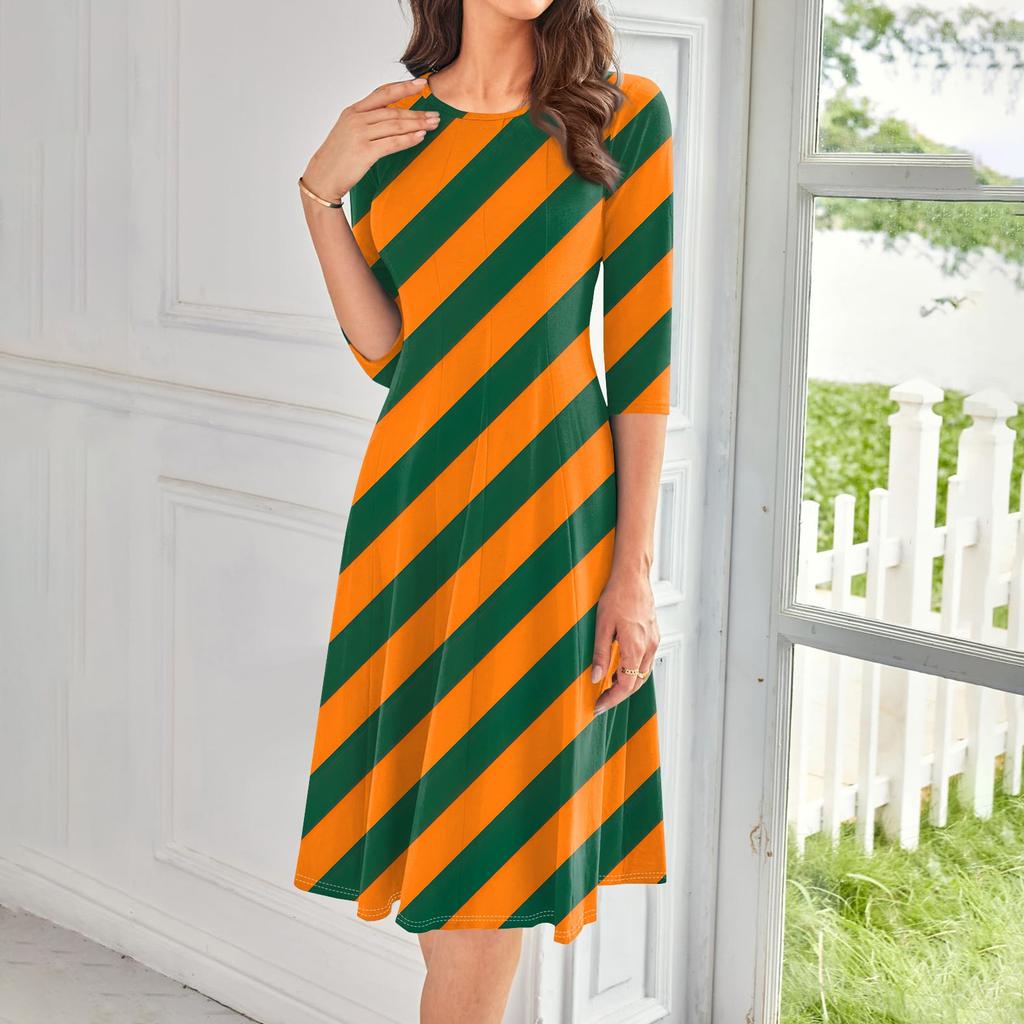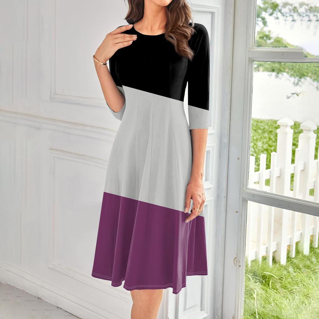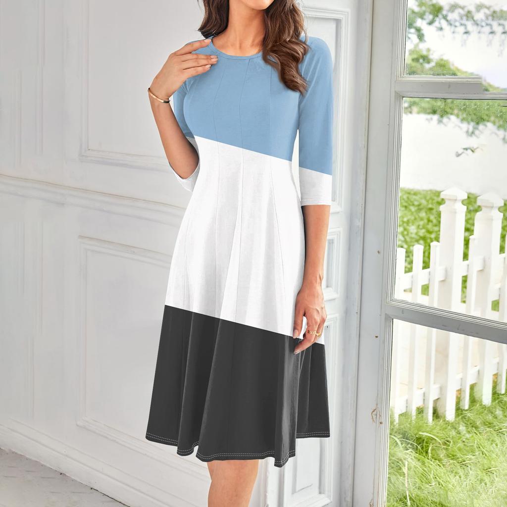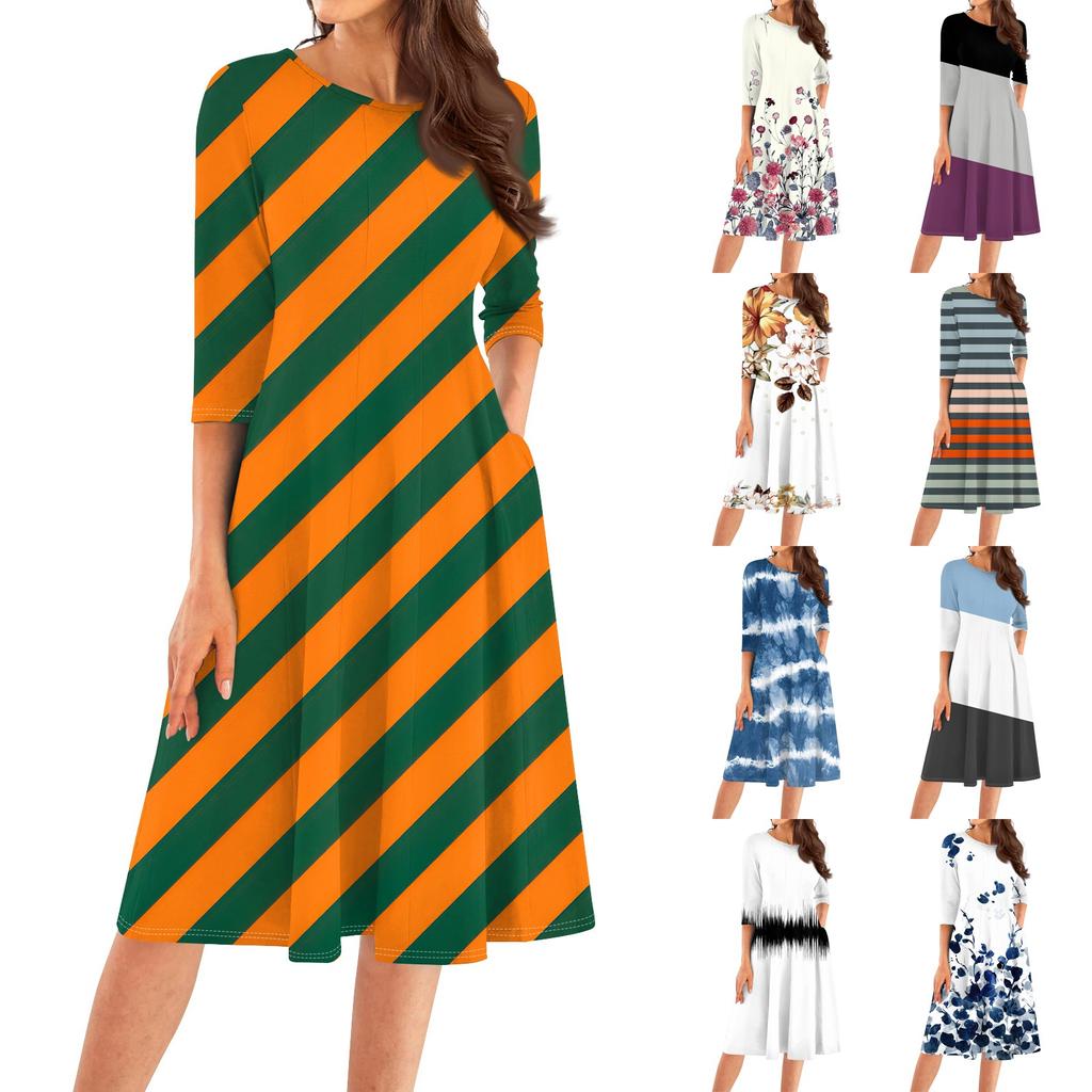 Женское повседневное модное платье миди с круглым вырезом и рукавом три четверти