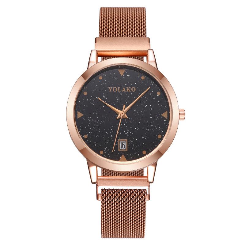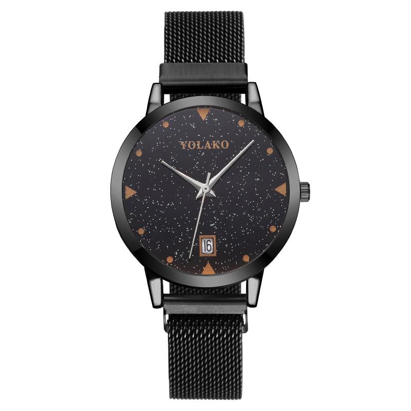 Модные женские часы с календарем и звездами, женские кварцевые часы с миланским ремешком и сетчатым ремешком