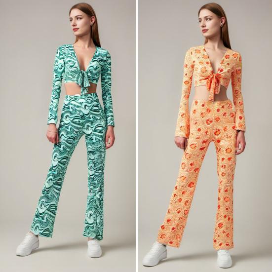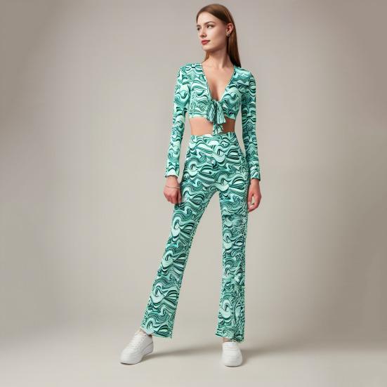 Женский повседневный костюм-двойка: Подчеркните свой стиль с помощью этого шикарного и удобного женского костюма.. Этот свободный комплект, изготовленный из дышащего полиэфирного волокна, обеспечивает стиль и комфорт.. В комплект входит топ с длинными рукавами и широкие брюки, которые отлично подойдут для разных типов фигуры..