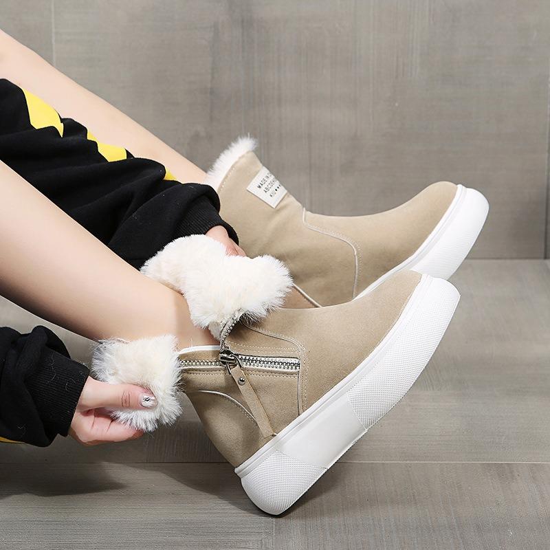 Короткие женские ботинки на толстой подошве с круглым носком и плюшевой подкладкой на губчатой подошве