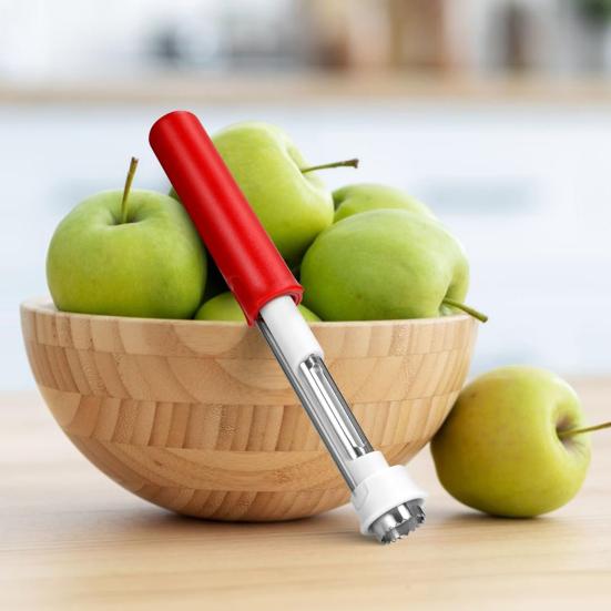 Беспроблемная уборка: Этот двухлезвийный нож для удаления сердцевины фруктов оснащен легко открывающимся рычагом и легко очищается простым ополаскиванием или может быть легко помещен в посудомоечную машину для тщательного ухода.. Сохраняйте кухонные инструменты в первозданном виде с легкостью.