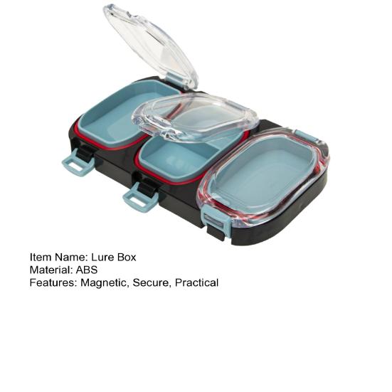 Этот ящик, оснащенный магнитным замком, удерживает такие предметы, как рыболовные крючки и вертлюжки, на месте, даже если они упадут в траву.. Магнит на задней стороне позволяет легко находить потерянные предметы.. Кроме того, магнитный присосочный камень на дне коробки обеспечивает дополнительную устойчивость, предотвращая смещение предметов во время транспортировки.