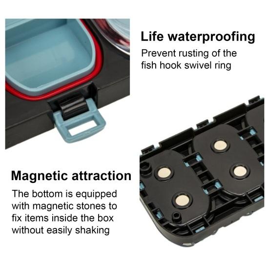 Надежная фиксация предметов: Магнитный присосочный камень, встроенный в основание коробки, надежно фиксирует предметы на месте, сводя к минимуму перемещение и потенциальный ущерб.. Предотвращает тряску или смещение содержимого, обеспечивая организованное хранение и легкий доступ к рыболовным принадлежностям.