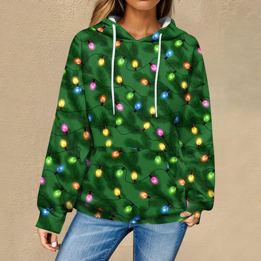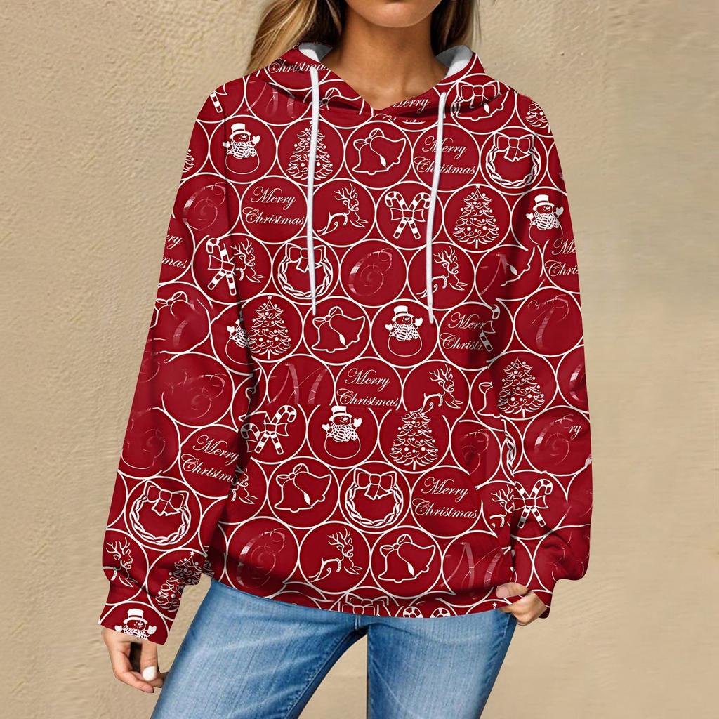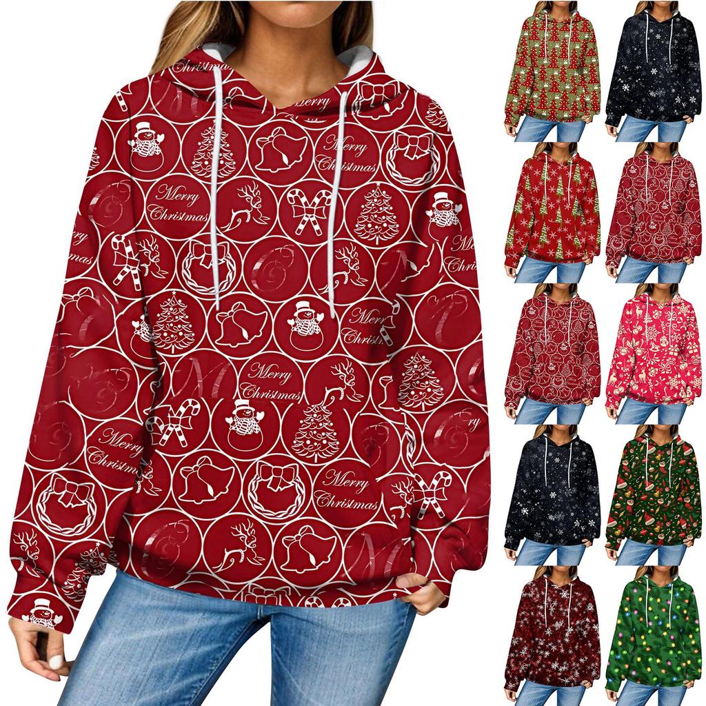 Женская повседневная мода рождественский принт длинный рукав пуловер толстовки с капюшоном свитшоты