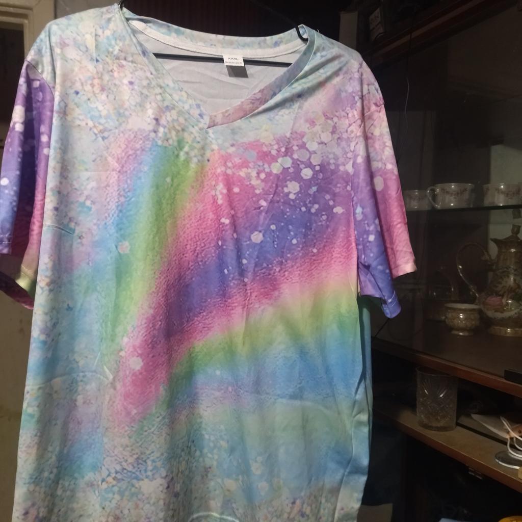 Очень понравилась, красивая, по размеру. Рисунок и спереди, и сзади. Ткань приятная к телу. Спасибо.