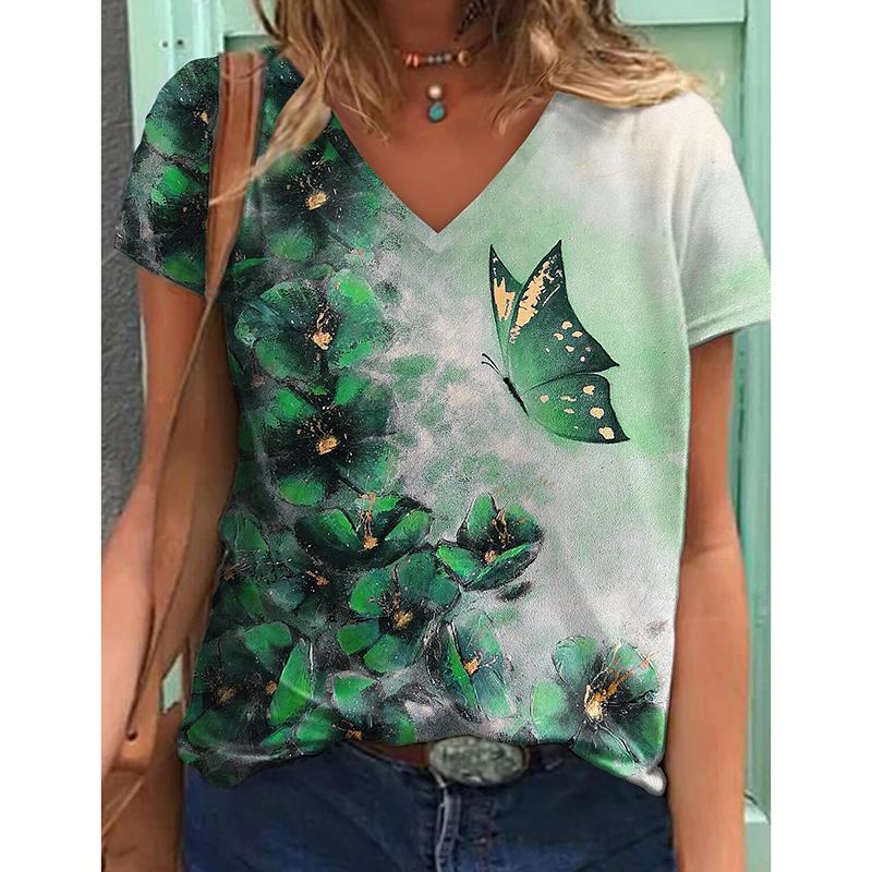 Летняя мода Цветочные бабочки 3D принт футболка женская уличная одежда повседневные футболки Y2k топы женские футболки с V-образным вырезом свободные размеры одежда — купить товар онлайн с бесплатной доставкой по всему миру!