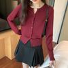 Европейский кардиган с круглым вырезом и правым плечом для женщин, осенне-зимний новый стиль, ленивый короткий рождественский красный свитер, куртка