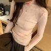 Высококачественная белая трикотажная нижняя рубашка для женщин на осень и зиму, полуводолазка в корейском стиле, внутренний топ, простой мягкий вощеный свитер
