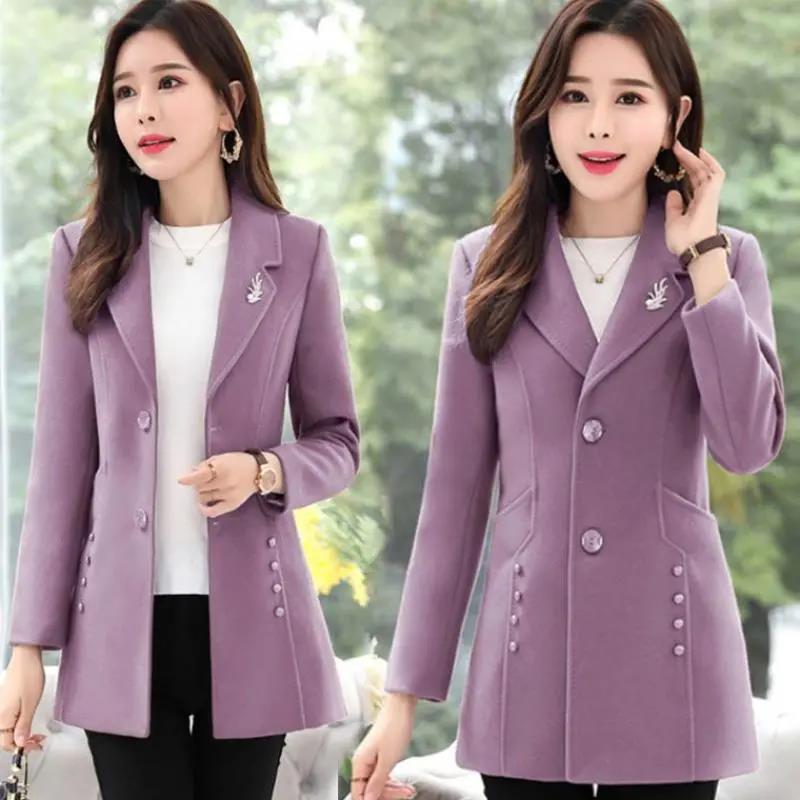 Женское зимнее пальто из твида большого размера с приталенным воротником, офисное, деловое, повседневное, с воротником-стойкой, теплое пальто