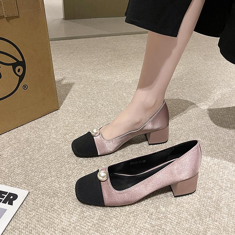 Туфли на высоком каблуке во французском стиле с небольшим ароматом, новый стиль на весну-осень 2024 года с лоскутным узором, украшенным мелкими жемчужинами, туфли на высоком каблуке — купить товар онлайн с бесплатной доставкой до всему миру!