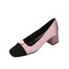 Туфли на высоком каблуке во французском стиле с небольшим ароматом, новый стиль на весну-осень 2024 года с лоскутным узором, украшенным мелкими жемчужинами, туфли на высоком каблуке