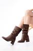 Женские современные стильные модные ботинки из искусственной кожи Albertine, коричневые ботинки на молнии на тонком искусственном меху на толстом каблуке