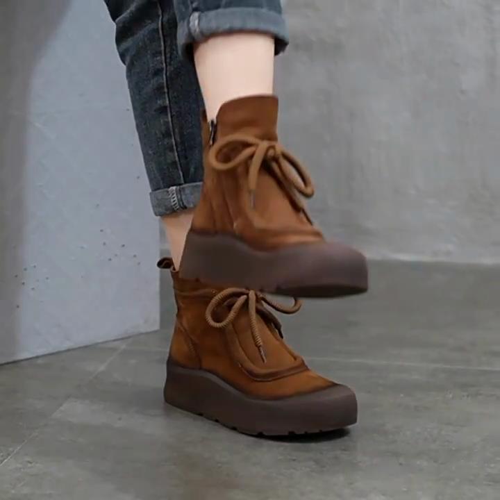 Johnature Ретро Натуральная кожа Толстая подошва Короткие сапоги Круглый носок Женские туфли на плоской платформе — купить товар онлайн с бесплатной доставкой по всему миру!