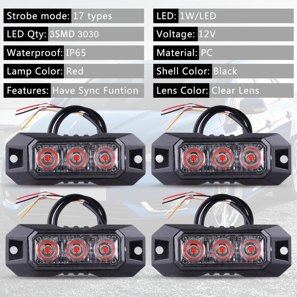 4 шт. 3 светодиодных сигнальных лампы-стробоскопа, мигающие решетчатые фонари, проблесковые маячки для грузовиков и автомобилей, светофоры 12 В 24 В, автомобильные фонари