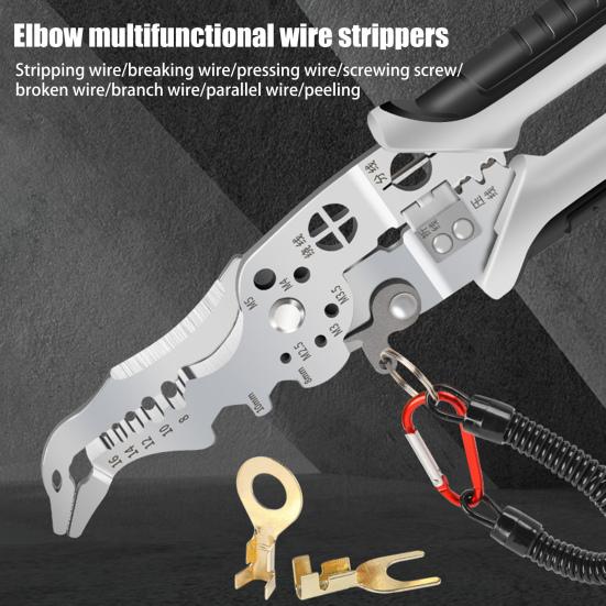 Этот интегрированный многофункциональный инструмент сочетает в себе возможности зачистки, обжима и резки кабеля в одном удобном устройстве.. Если вам нужно сломать, зачистить, обжать, смотать, разделить, зажать, скрутить или затянуть провода, этот инструмент поможет вам.. Это упрощает задачи как для электриков, так и для любителей DIY.