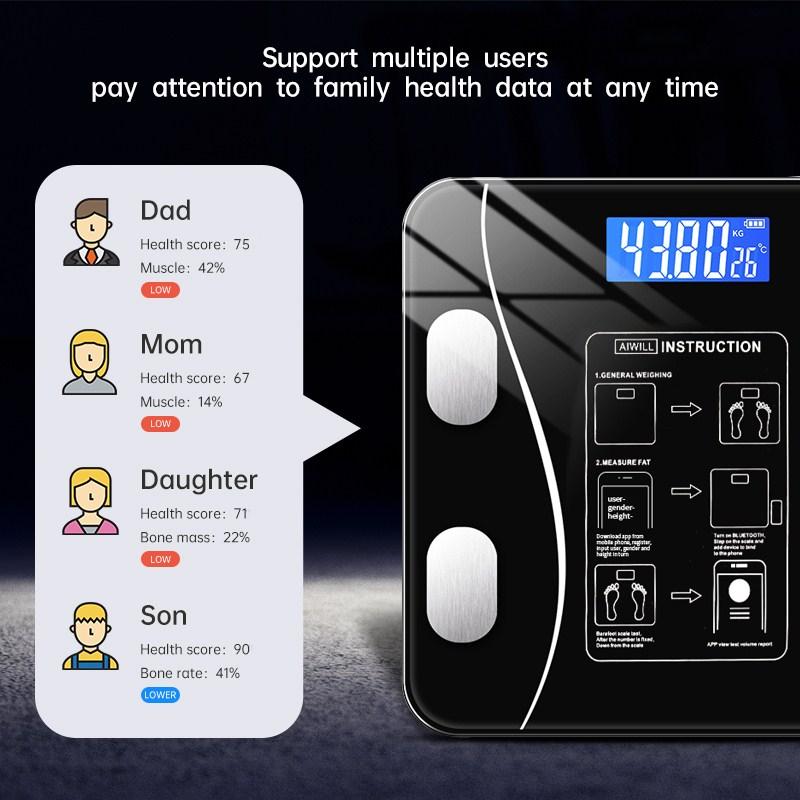 Умные весы для ванной комнаты, Bluetooth, электронные весы для измерения веса, анализатор состава тела ИМТ, водный баланс, цифровые напольные весы