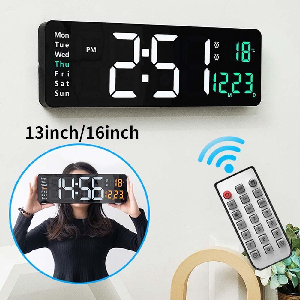 13/16-дюймовый большой дисплей, настенные цифровые настенные часы, дистанционное управление, температура, дата, неделя, выключение, память, настольные часы, двойной будильник, USB