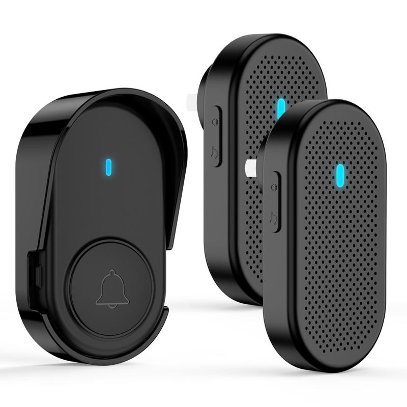 Беспроводной дверной звонок, 2 приемника, водонепроницаемый комплект дверного звонка, радиус действия более 1000 футов, 5 уровней громкости, 38 мелодий для дома