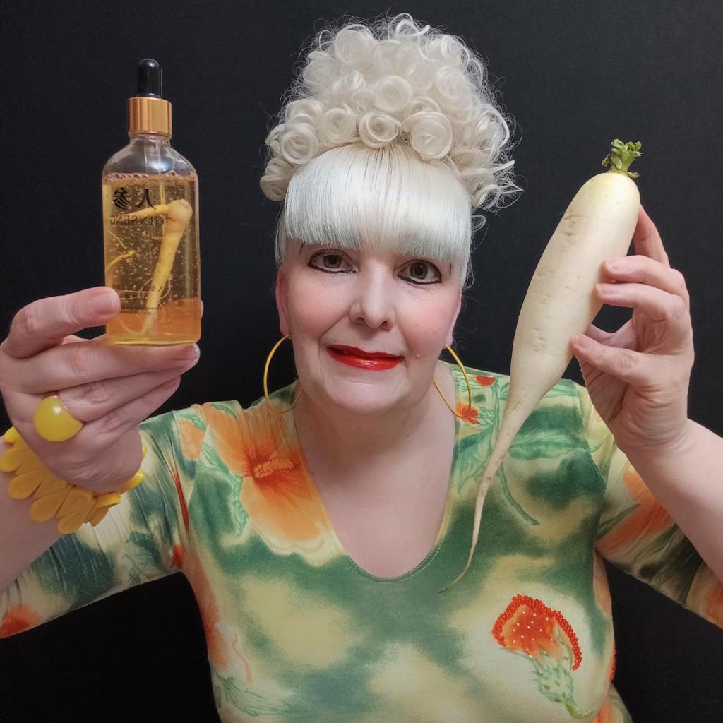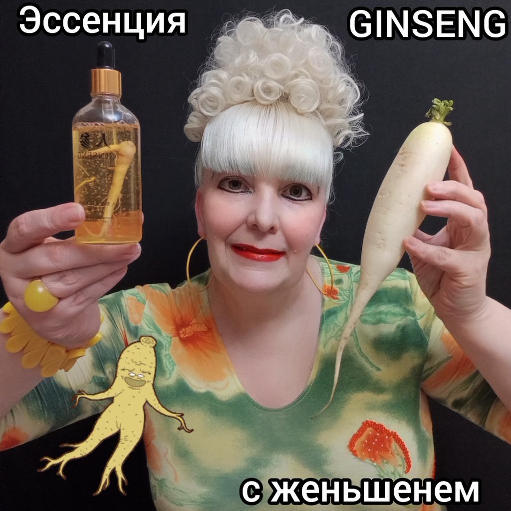 👩💦👌КРУТАЯ ЭССЕНЦИЯ С ЖЕНЬШЕНЕМ, С ЗОЛОТЫМИ ЧАСТИЧКАМИ 24К GOLD, С ПЕПТИДАМИ И С НИКОТИНАМИДОМ.👩💦👌 👉Жми на СЛАЙД-ШОУ! Я уже достаточно много перепробовала различных сывороток и эссенций для лица. Все они были чудесными. Но с содержанием женьшеня у меня ещё сывороток и эссенций не было. А ведь женьшень по праву считается корнем жизни в силу своих многочисленных полезных свойств! У данной эссенции корень женьшеня содержится прямо внутри флакона. Через его стеклянные стенки этот корень очень хорошо просматривается. И выглядит это необычно и даже забавно. Флакон солидный и увесистый, так как стекло его толстое. А ещё он просто огромный по размеру, а значит эссенции в нём хватит на долго. Объём флакона составляет аж 100 мл! Это гораздо больше, чем у эссенций стандартного разлива, где обычно содержится 15 мл или 30 мл. Для удобства нанесения мой флакон имеет пипетку, которая отлично набирает данное средство для ухода за кожей лица. Сама эссенция представляет собой слегка маслянистую консистенцию желтоватого цвета. Аромата она практически не имеет. Помимо корня женьшеня эссенция ещё содержит мелкие золотые частички, пептиды и никотинамид. Пептиды - это своего рода строительный материал, у которого цепочки аминокислот отвечают за усиление активности клеток кожи. Никотинамид относится к витамину В3. Он устраняет покраснение и шелушение кожи, а также выравнивает тон лица. После применения этой эссенции кожа хорошо увлажняется, освежается, напитывается жизненной силой и энергией, становится гладкой, здоровой и эластичной. Эссенция подходит для всех типов кожи. Средство просто замечательное как по своему богатому и полезному составу, так и в плане красивого дизайна. Получила я эту эссенцию в золотистой фирменной упаковке, на которой есть информация об использовании продукта, штрих код, QR-code и срок годности до 2027 года. В данный момент этого товара в наличии пока нет, но я всё равно рекомендую его приобрести как только эта эссенция появится в продаже. ✔️ПРИМЕЧАНИЕ: в фотосессии мне помогал белый редис Дайкон, так как корня женьшеня дома у меня нет. 🎼В слайд-шоу использована композиция "Still In Love With You" в исполнении No Angels.