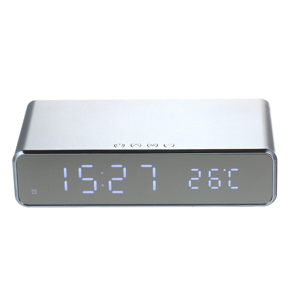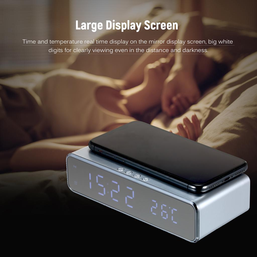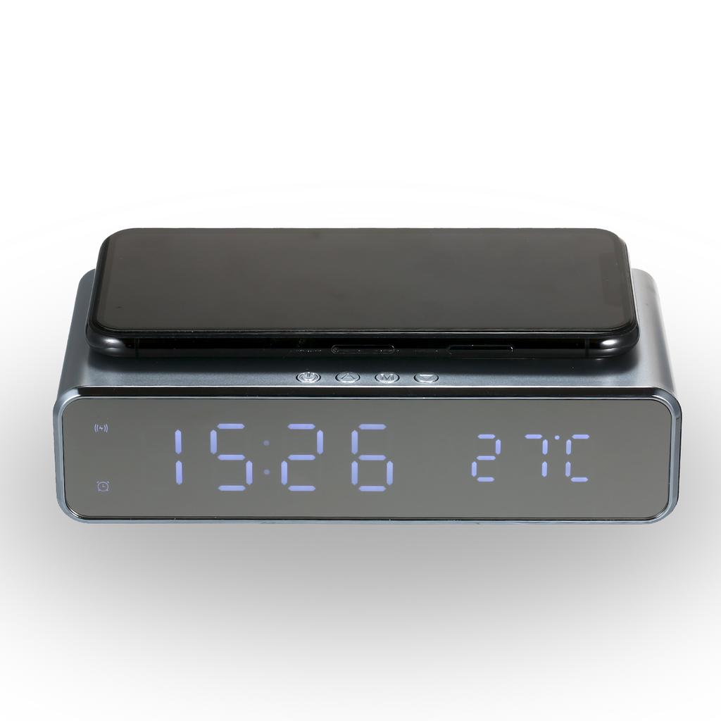 Многофункциональные часы: включая функции настольных часов, будильника, измерителя температуры и беспроводного зарядного устройства, все в одном устройстве.