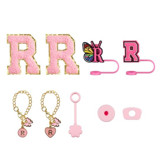 Набор аксессуаров для чашек из 9 шт., стакан для чашек емкостью 30 унций и 40 унций, инициалы, украшения, силиконовые соломенные колпачки, подвески с буквами, водонепроницаемые пробки, ручка, наклейка-подвеска