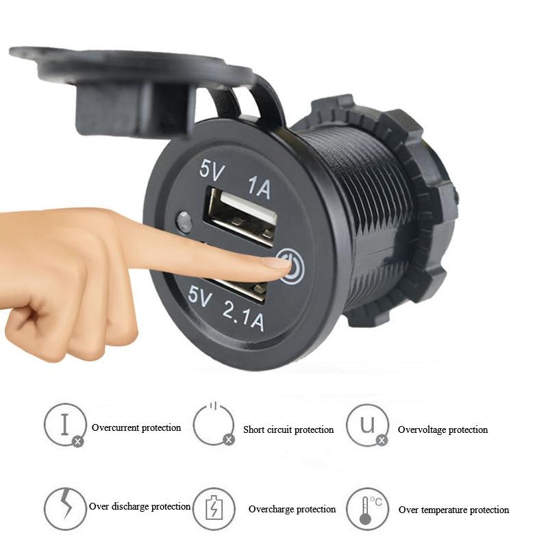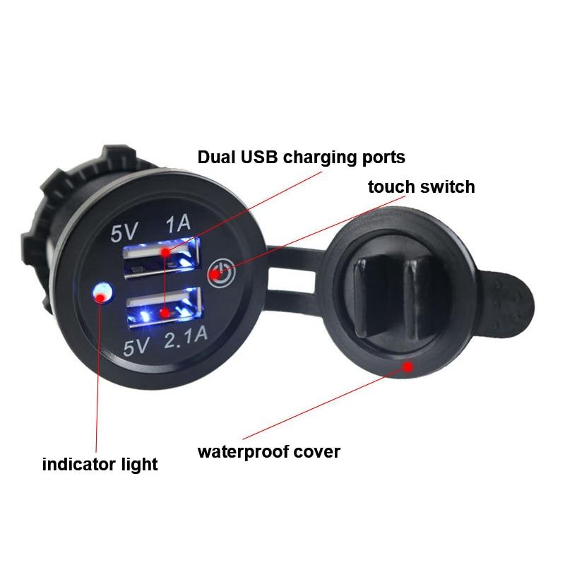Двойная USB-разъема для автомобильного зарядного устройства, водонепроницаемая розетка постоянного тока 12 В-24 В 3,1 А с сенсорным переключателем для автомобиля, мотоцикла, морской лодки