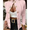 Весна Осень Модная Металлическая Пряжка Украшение Воротник-стойка Длинные Рукава Slim Fit Куртка Женская Одежда