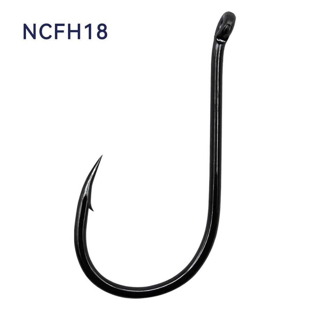Рыболовный крючок из высокоуглеродистой стали с изогнутым зевом и зубцами для ловли крупной рыбы.. Уникальная плоская конструкция с кольцом на дне для удобства крепления.