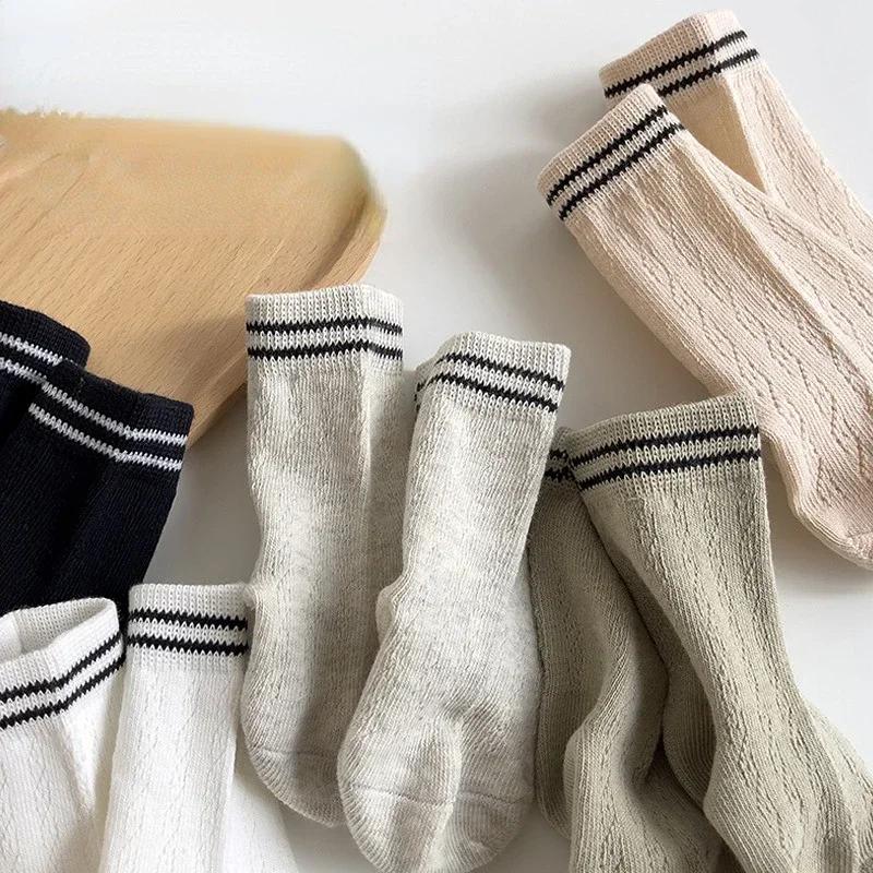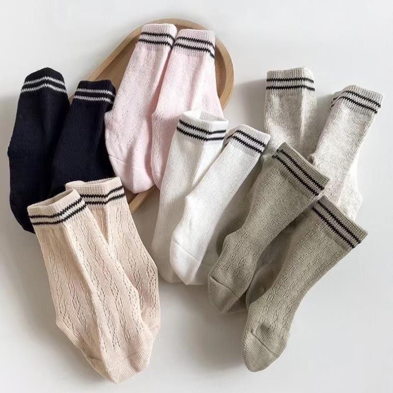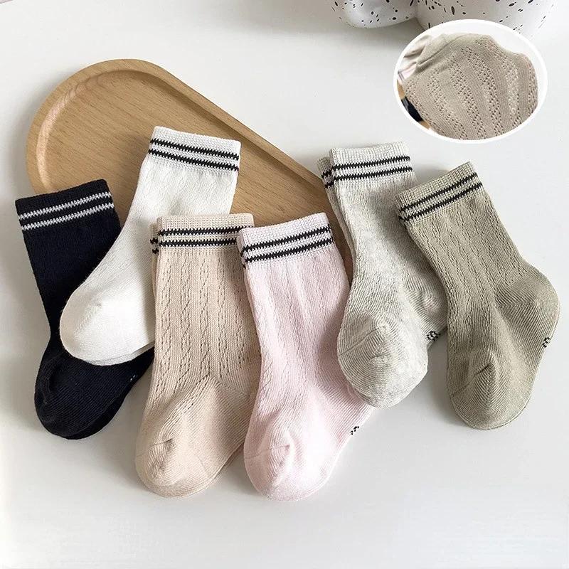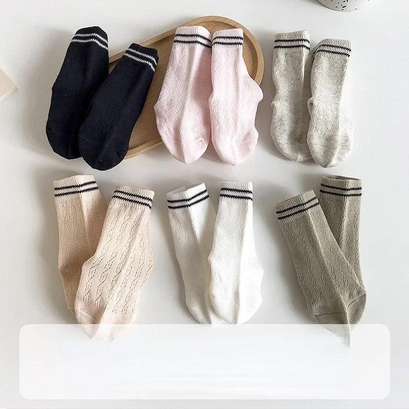Корейские детские хлопковые сетчатые носки весна-лето средние носки для новорожденных малышей мальчиков девочек полосатые носки 0-7 лет