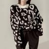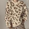 Женский утолщенный теплый свитер с леопардовым принтом, свитер с длинным рукавом и круглым вырезом, свободный повседневный трикотажный пуловер на осень и зиму