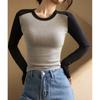 Женская хлопковая футболка с круглым вырезом и длинными рукавами, модная женская повседневная летняя футболка