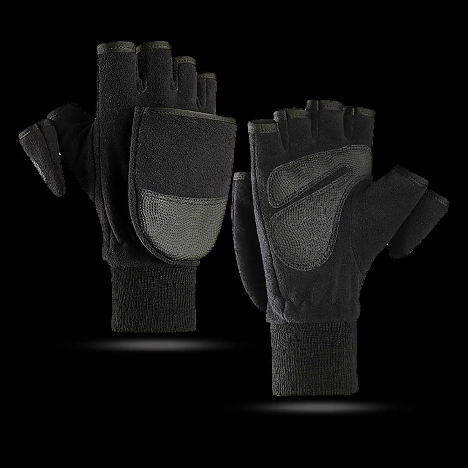 Зимние черные перчатки для рыбалки с откидным чехлом, противоскользящие, дышащие, теплые перчатки для фотосъемки на открытом воздухе