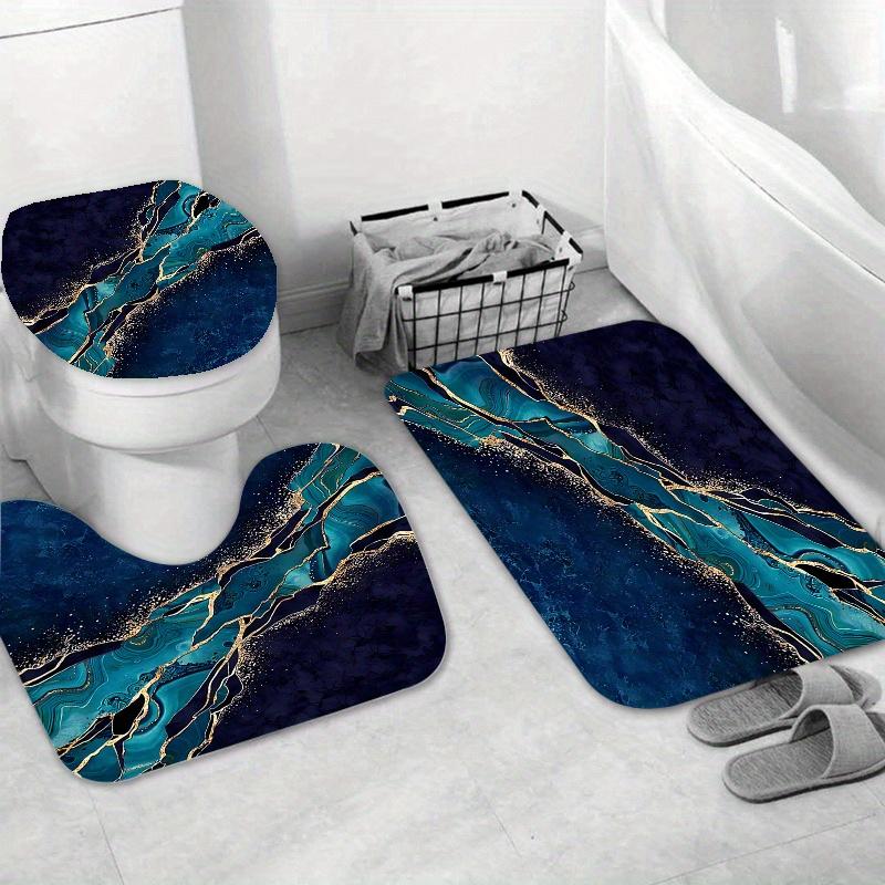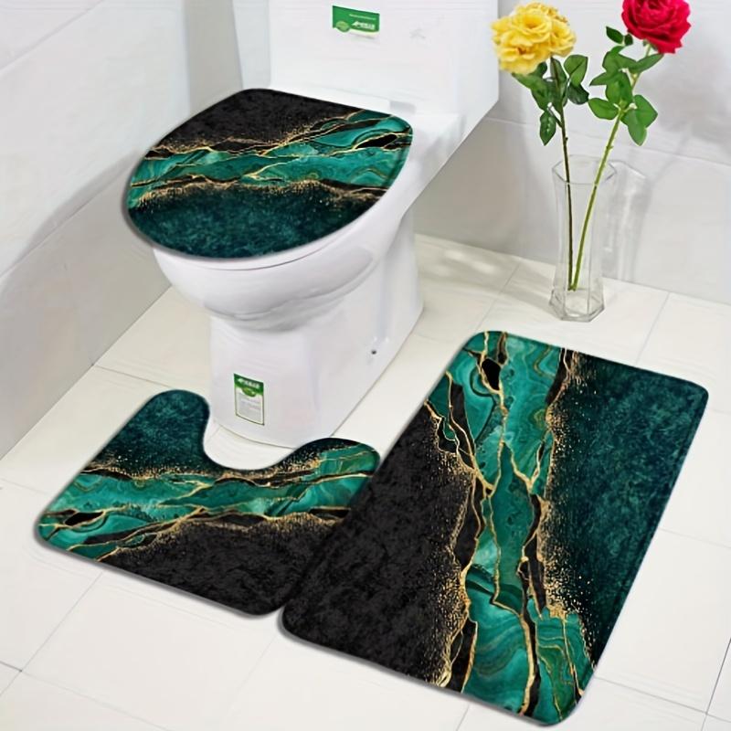 Набор из 3 ковриков для ванной с мраморным узором, нескользящий коврик для ванной, коврик для унитаза в форме буквы U, накладка на крышку унитаза, декор для ванной комнаты