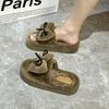 Модные весенне-осенние толстые тапочки с бантом и мохнатыми тапочками для женщин, зимняя новая мягкая теплая хлопковая обувь