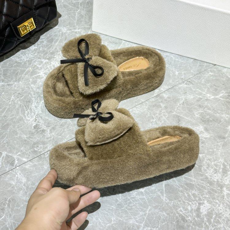 Модные весенне-осенние толстые тапочки с бантом и мохнатыми тапочками для женщин, зимняя новая мягкая теплая хлопковая обувь — купить товар онлайн с бесплатной доставкой до всему миру!