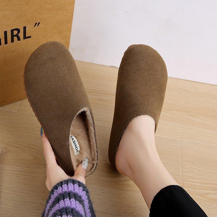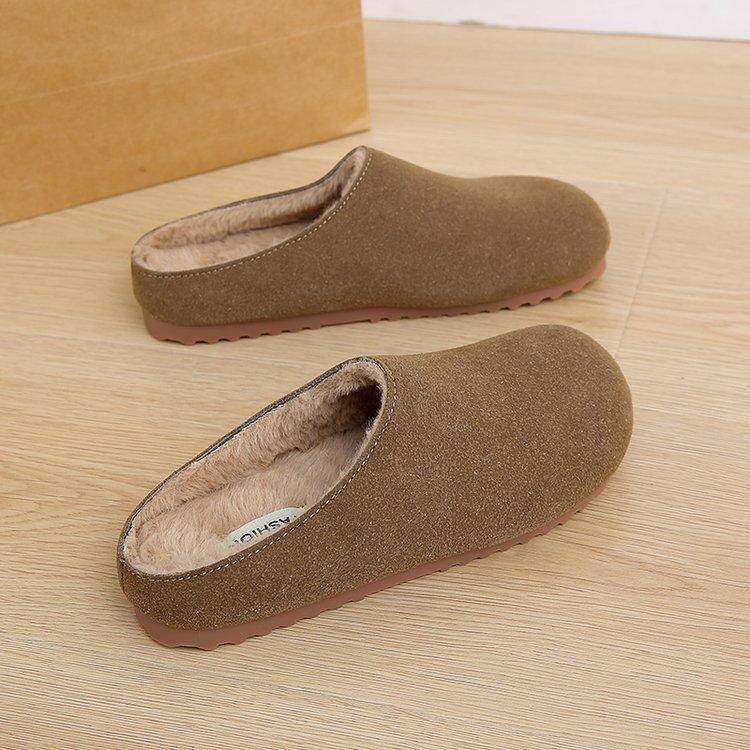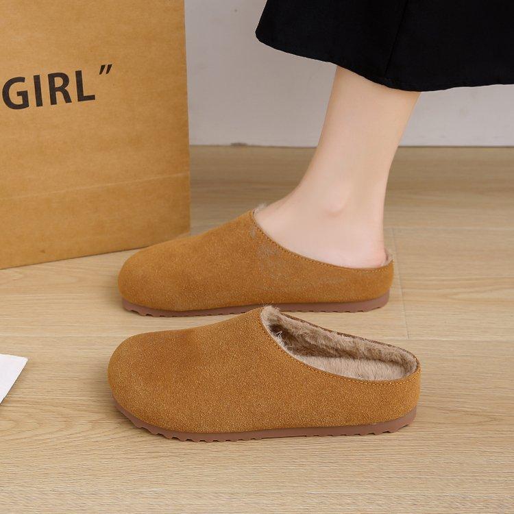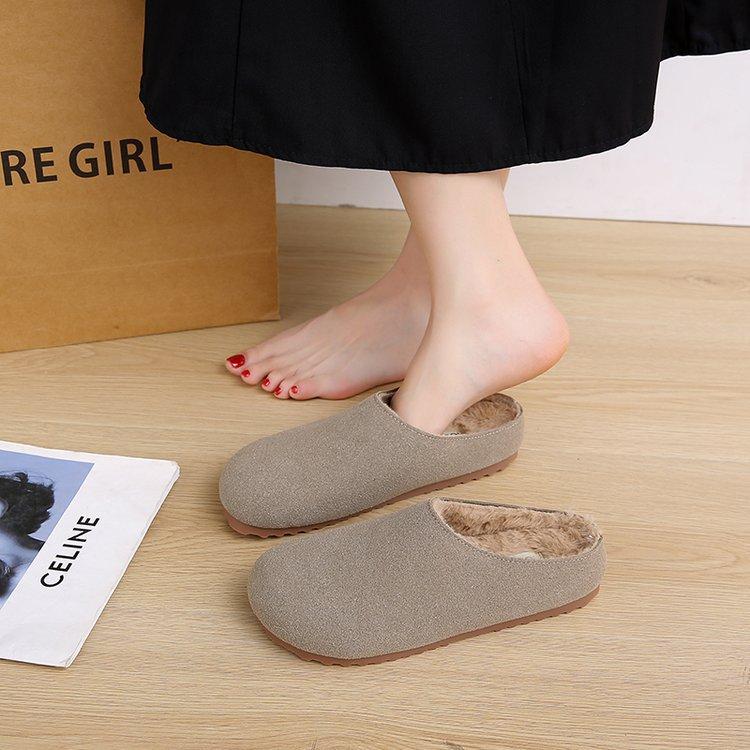 Модные весенне-осенние тапочки в стиле ретро с толстой подошвой Birkeinstock, женские тапочки с ленивым корейским круглым носком, зимние теплые мягкие полутапочки