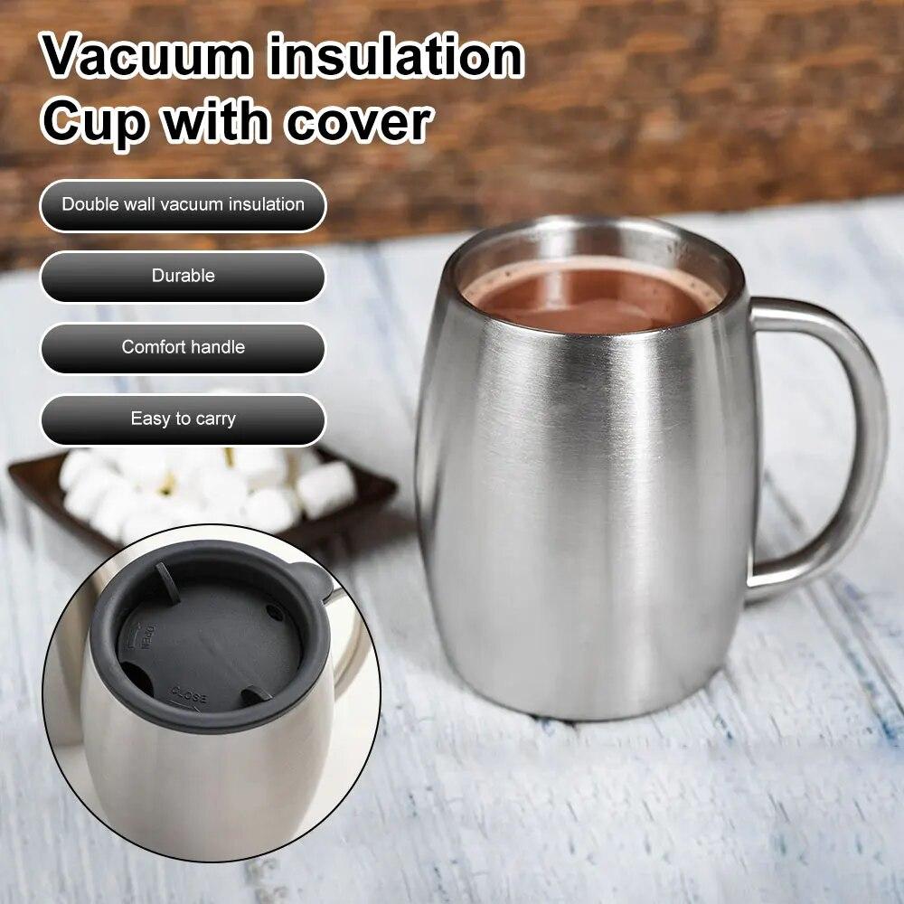 420 мл термокружка из нержавеющей стали с крышкой и ручкой, не содержащая бисфенол А крышка, не проливается, двойные стенки, кружки для кемпинга и путешествий