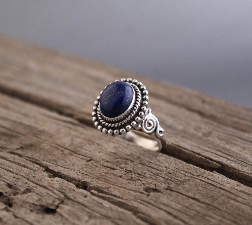Комплект колец для помолвки из натурального лазурита грушевидной огранки, уникальное кольцо в стиле «Листья природы» в стиле ар-деко, кольцо из розового золота 14 карат с луной, кольцо с синим сапфиром