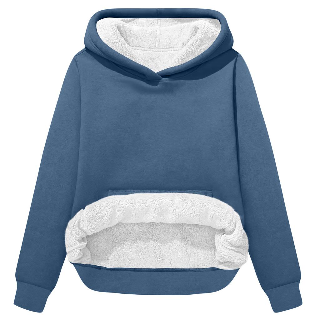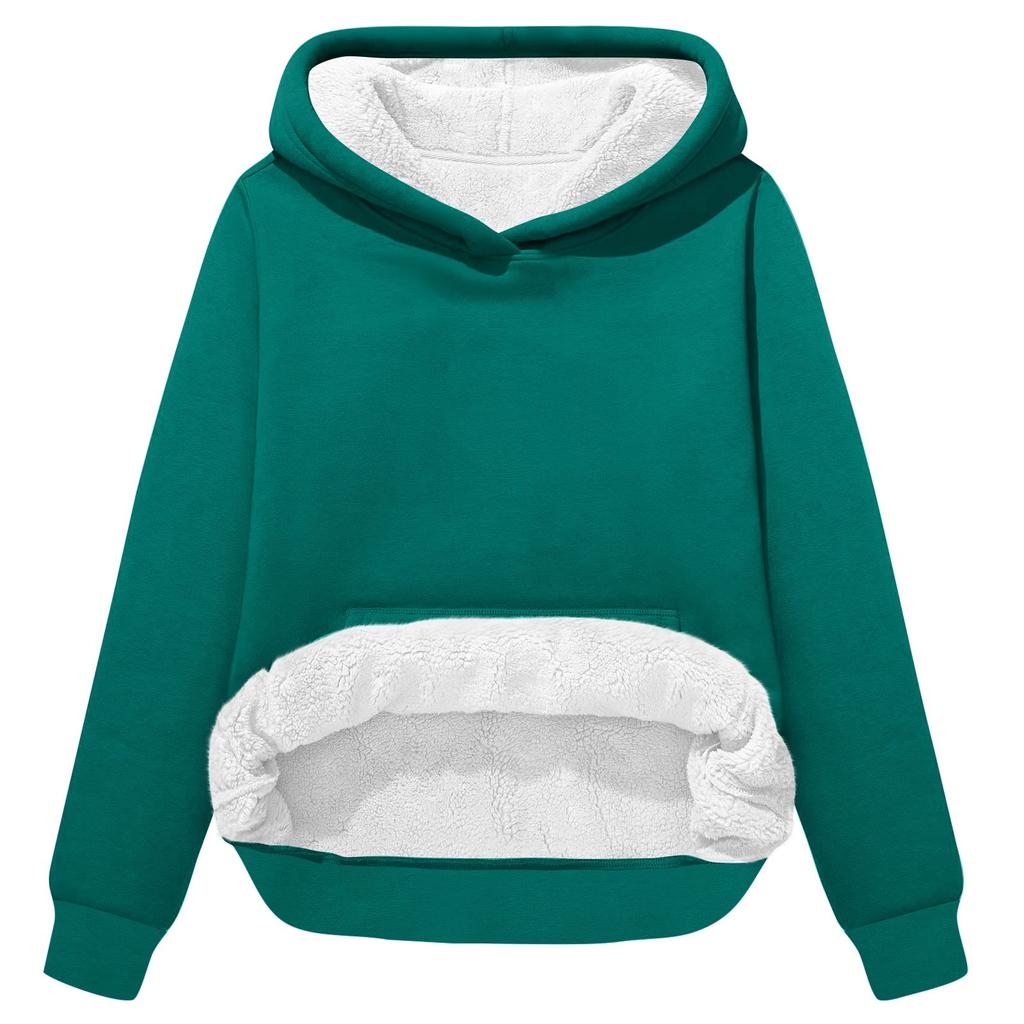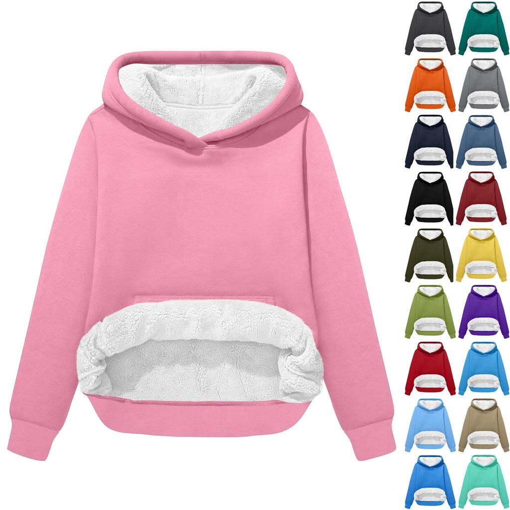 Женская модная повседневная универсальная повседневная бархатная толстовка с капюшоном, длинный рукав, однотонный топ, толстовка