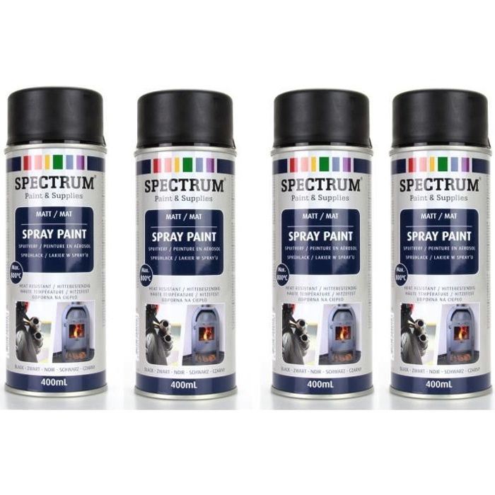 Лот из 4 высокотемпературных красок, матовый черный аэрозоль 800°C для автомобилей, мотоциклов, дровяных печей